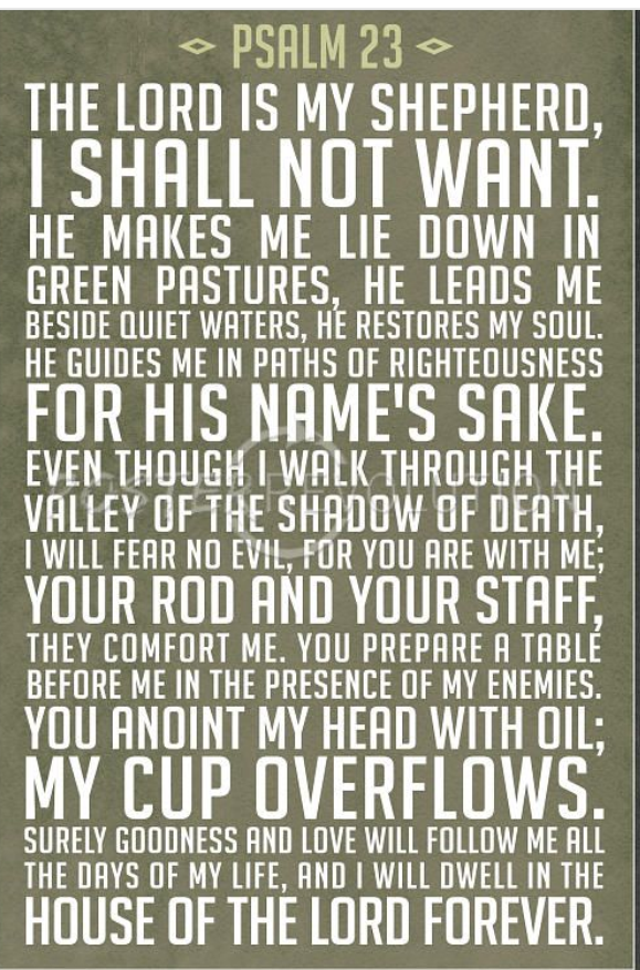 My brother spoke a word over me on Monday that I know is true for me. When we first had our son he wouldn’t settle at night & I wouldn’t want to worry or have him feel my fear of what might be making it hard. So to calm us both over the top of his cries, and what still calms him now, I would sing Psalm 23 over him. As much for me as for him!