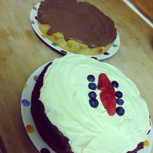 Baked Banana cake with melted chocolate topping & Red Velvet cake. GrowGroup social, loving getting to know this group of fun.