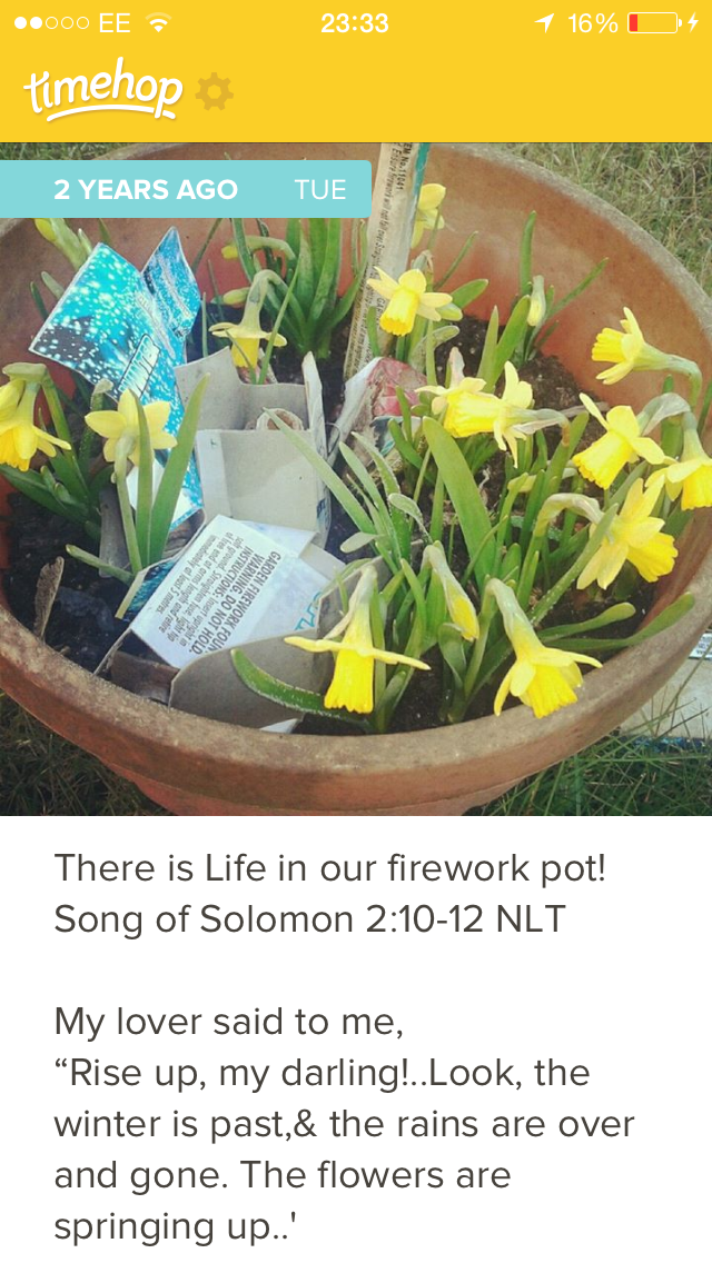 I thought there was nothing in this pot as it had been kicked,messed with, even used to send the fireworks out of and left alone..then one morning I noticed life! Beautiful things growing out of what looked to be nothing. Reminds me of my God of Grace ❤️