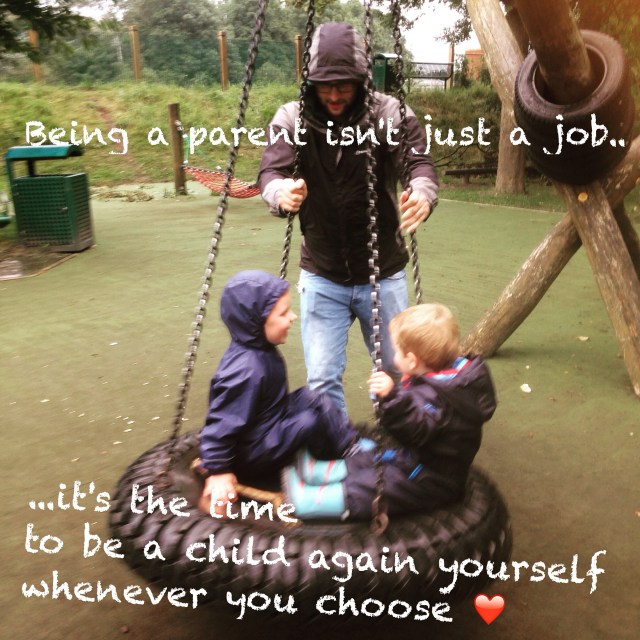Something she said in the show hit me & I just loved it so much I wanted to write it down as it resonated with me. To be honest I went a step further & rubbishly stuck the words on a photo of my husband last night playing in the park in the rain with my nephew & son..