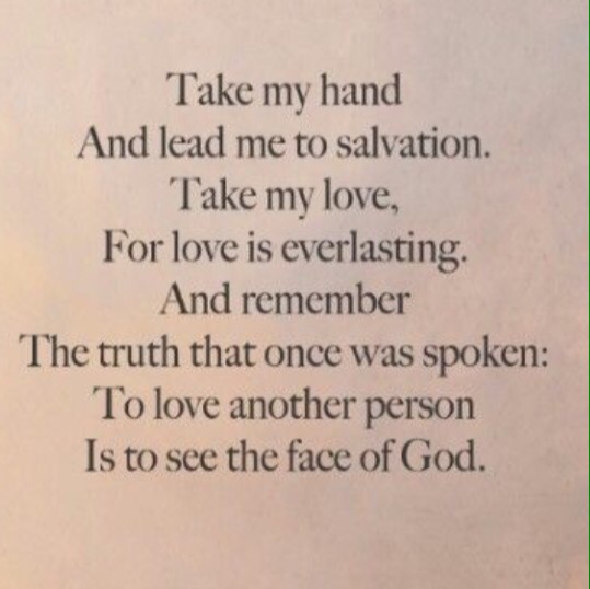Despite implications on his own life he secures her desires and looks after her child. I love that he gives himself to this broken and deserted woman. Just as Jesus does, the ultimate picture of sacrificial love, so personal and beautiful yet the greatest power in all the world! Jean VJ does what our Jesus did..he restores her dream..